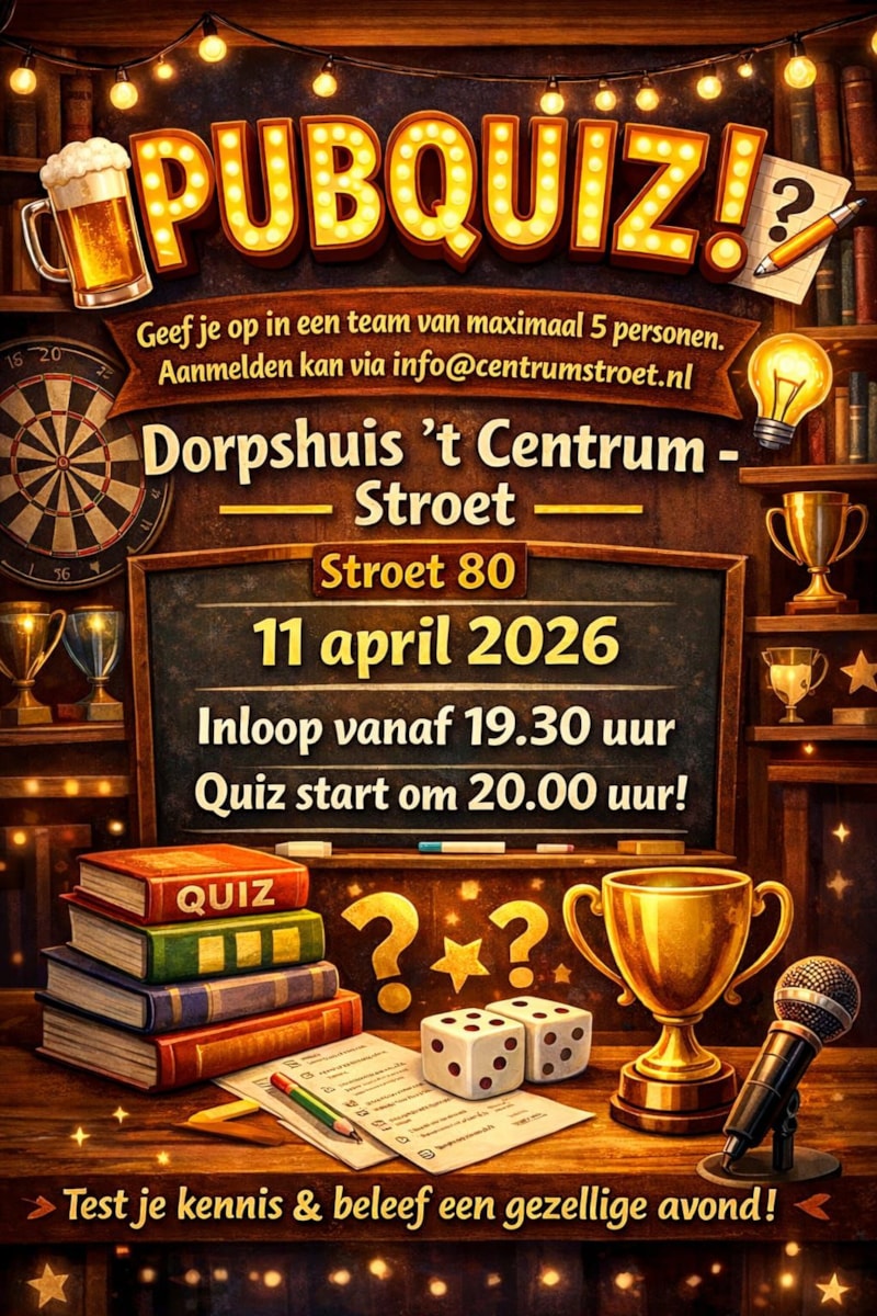 ’T Centrum Stroet organiseert 11 april 2026 een pubquiz.